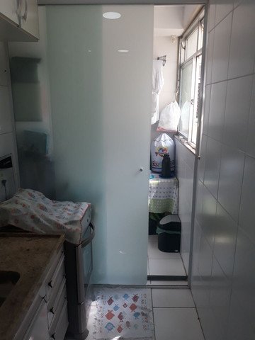 Oportunidade apartamento, condomínio Bela Vista, bem arejado, todo rebaixado em gesso, piso em porcelanato acetinado, varanda, sala, banheiro com blindex e gabinete, 2 quartos, cozinha com divisa blindex com a área de serviço com aquecedor a gás.